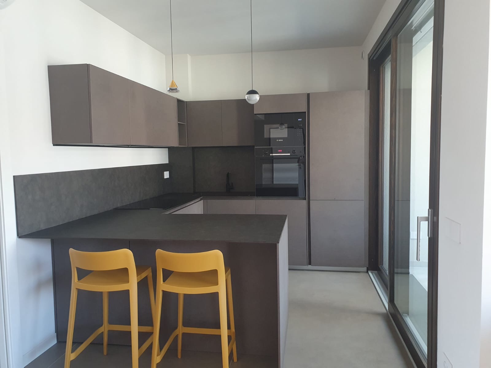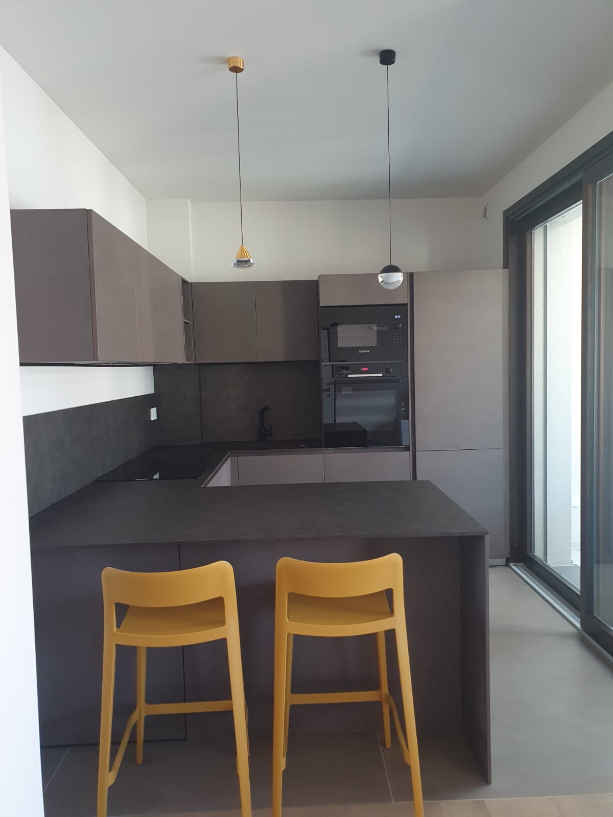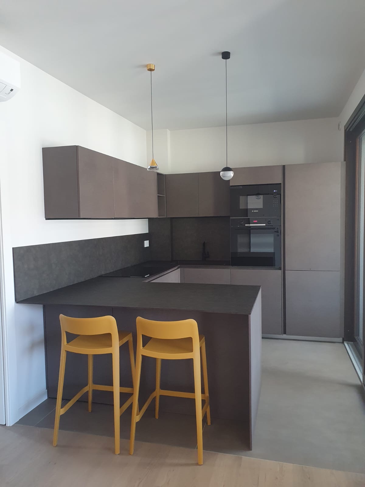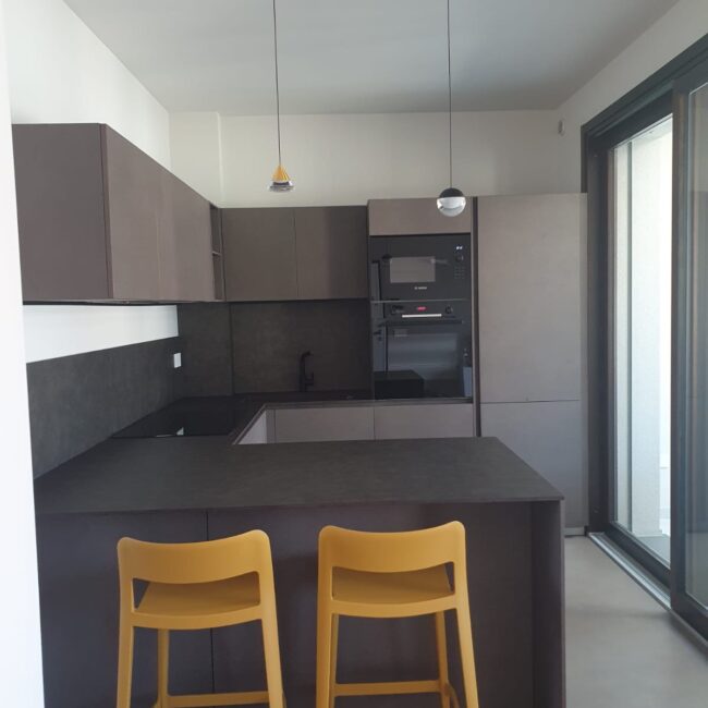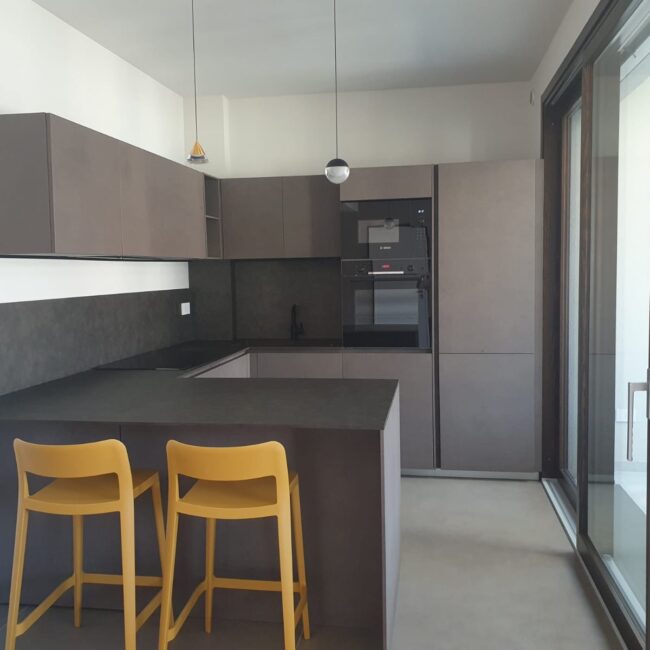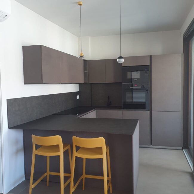 Quando il design incontra la personalità, nascono progetti come questo. Una cucina Modulnova che si distingue per la scelta audace di materiali e colori. Le ante in Miltech Bronzo creano una base solida e raffinata, mentre la penisola con piano in HPL (laminato stratificato) offre una superficie estremamente funzionale e facile da pulire, fornita da Fratelli Cesana.